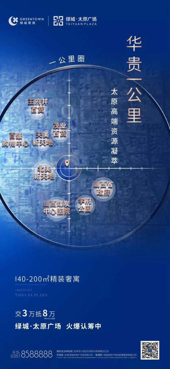 绿城·太原广场这样的作品,一个城市不可能出现第二个。因为它是城市高度发达后,精华资源的凝萃。绿城·太原广场是目前长风亲贤3公里范围内仅有的待售项目,十分稀缺。
