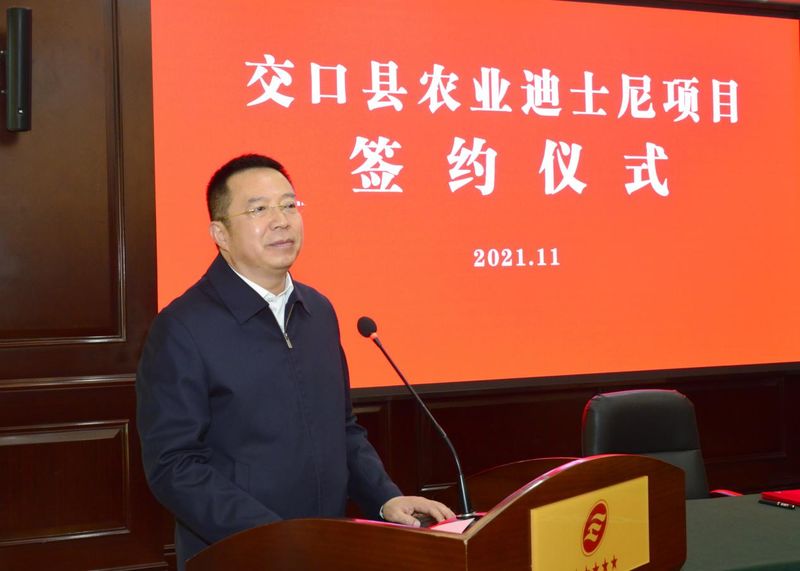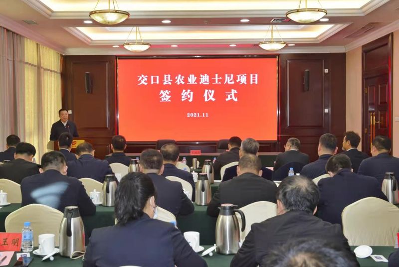 11月8日,交口县农业迪士尼项目签约仪式在太原隆重举行。作为全国首个落地签约的农业迪士尼项目,吕梁市交口县将与山东信发集团进一步深化战略合作,共同携手打造文化旅游和乡村振兴示范标杆。吕梁市市长张广勇出席签约仪式并致辞。吕梁市副市长油晓峰、市政府秘书长王建强一同参加。交口县委书记刘惠民主持签约活动,信发集团董事长张刚、农业迪士尼中国公司总裁王明浩分别发言,交口县委副书记、县长李刚介绍项目情况。
